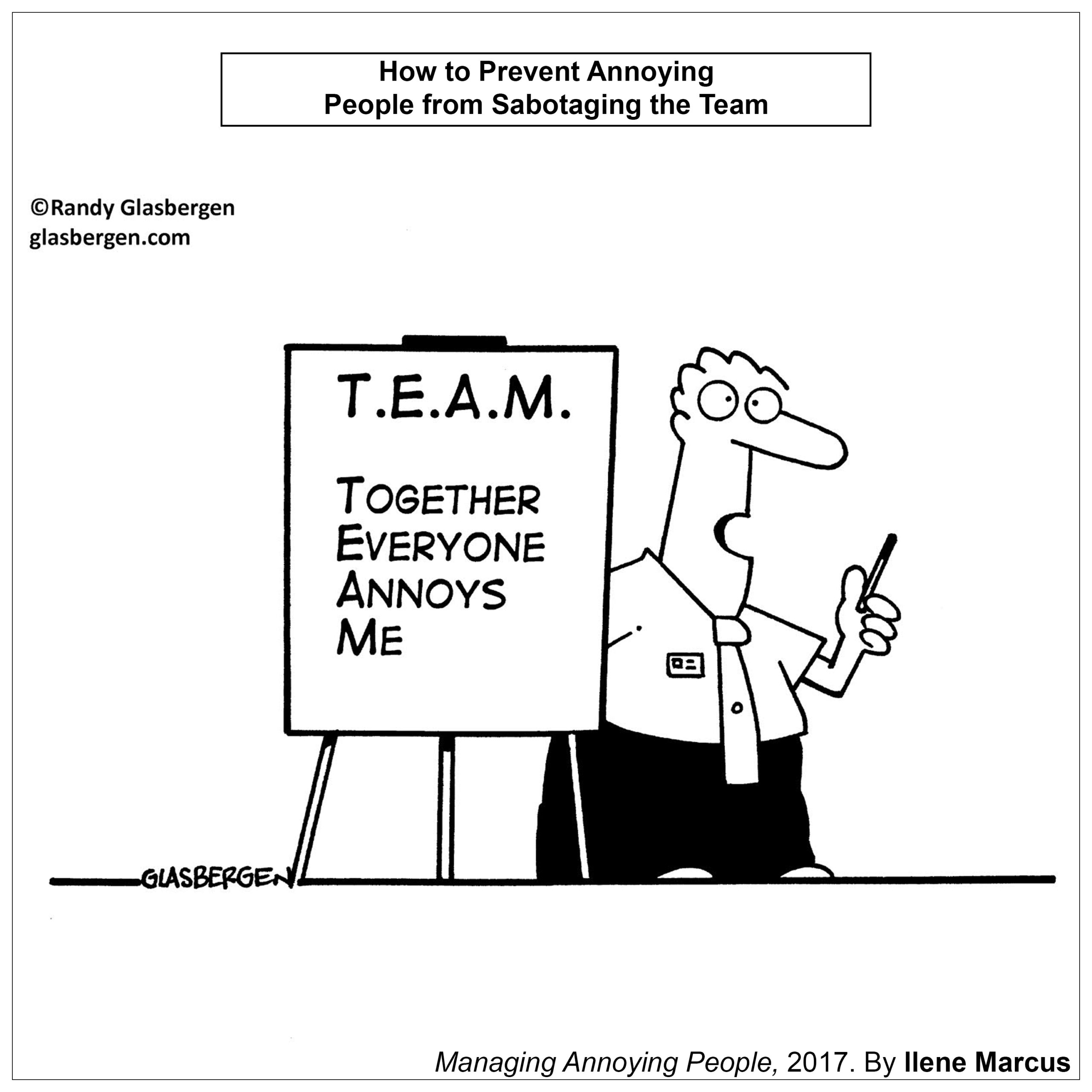 Whether you like it or not work is a team sport. I have come to learn that TEAM is the acronym for Together Everyone Annoys Me. Work teams are the rule, not the exception.
